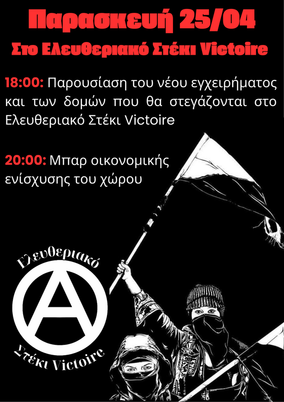 Ανακοίνωση έναρξης λειτουργίας του Ελευθεριακού Στεκιού Victoire
