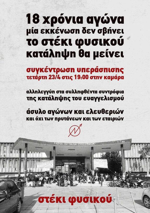 Αλληλεγγύη στο Στέκι Φυσικού και στην κατάληψη του Ευαγγελισμού
