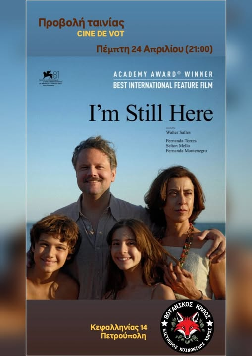 Η ταινία I'm Still Here (2024), σε σκηνοθεσία του Walter Salles, τοποθετείται στη Βραζιλία των αρχών της δεκαετίας του 1970, περίοδο έντονης πολιτικής καταπίεσης υπό το καθεστώς της στρατιωτικής δικτατορίας. Η υπόθεση επικεντρώνεται σε μια οικογένεια που δοκιμάζεται όταν ο πατέρας συλλαμβάνεται και εξαφανίζεται από το κράτος, οδηγώντας τα υπόλοιπα μέλη σε μια επώδυνη επαναδιαπραγμάτευση της καθημερινότητάς τους.