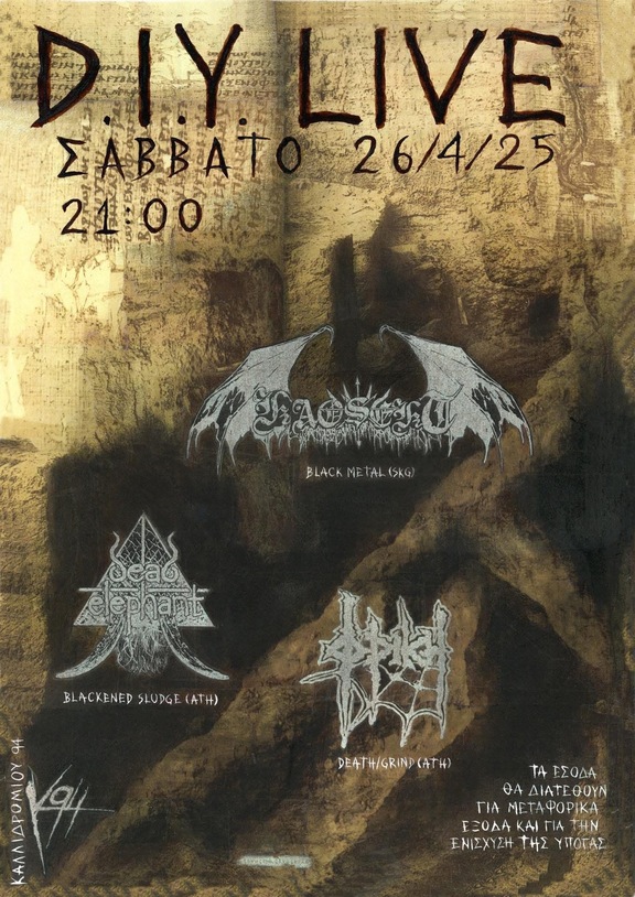 Το Σάββατο 26/4 στις 21:00 στήνουμε αυτοοργανωμένο live με Friki και Dead Elephant από Αθήνα και Kaosekt από Θεσσαλονίκη.