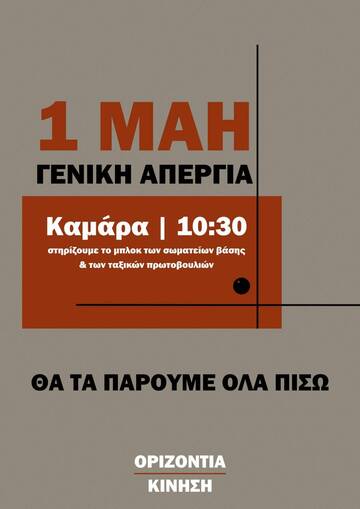 ΑΠΕΡΓΙΑΚΗ ΣΥΓΚΕΝΤΡΩΣΗ ΠΕΜΠΤΗ 1 ΜΑΙΟΥ 10:30 ΣΤΗΝ ΚΑΜΑΡΑ