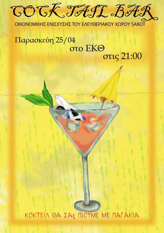 coctail bar οικονομικής ενίσχυσης του ελευθεριακού χώρου Sabot στο πάρκο του ΕΚΘ