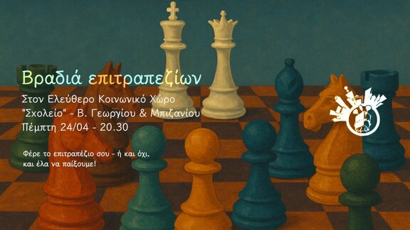 Πεμπτη 24/04 στις 8μιση, ελα στον Ελεύθερο Κοινωνικό χώρο Σχολείο να παίξουμε!