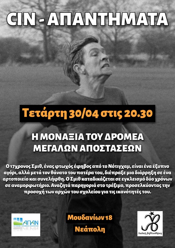 Προβολή ταινίας: Η μοναξιά του δρομέα μεγάλων αποστάσεων