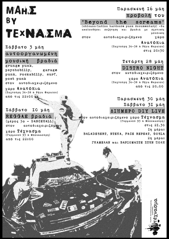 Παρασκευή 30 μάη-Σάββατο 31 μάη: ΔΙΗΜΕΡΟ DIY LIVE στον αυτοδιαχειριζόμενο χώρο Τέχνασμα (Γερμανού 93 & Μπουκαούρη) στις 21.30