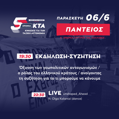 Εκδήλωση-Συζήτηση: Όξυνση των γεωπολιτικών ανταγωνισμών / ο ρόλος του ελληνικού κράτους / ανοίγοντας τη συζήτηση για το τι μπορούμε να κάνουμε.