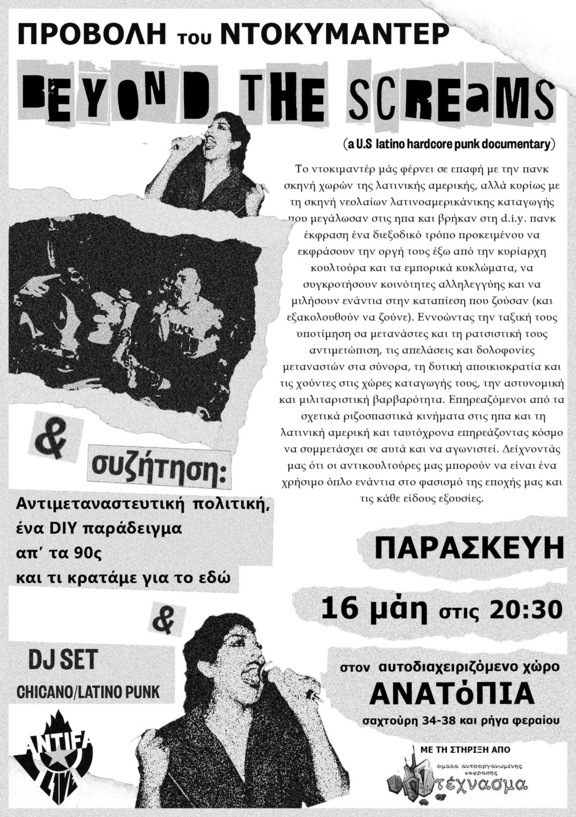 …στον αυτοδιαχειριζόμενο χώρο Ανατόπια από το ANTIFA LIVE με τη στήριξη της ομάδας αυτοοργανωμένης έκφρασης Τέχνασμα (θα ακολουθήσει συζήτηση και βραδιά με σχετικές μουσικές).