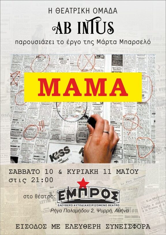 Η θεατρική ομάδα Ab Intus σας παρουσιάζει το έργο της Μάρτα Μπαρσελό «ΜΑΜΑ».