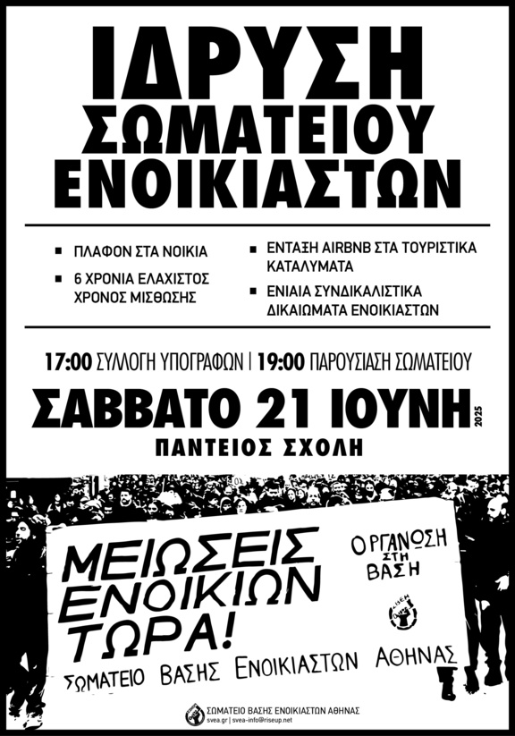 Ιδρυση Σωματείου Βάσης Ενοικιαστών Αθήνας
