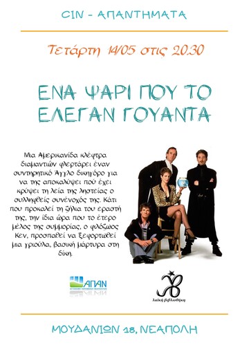 Την Τετάρτη 14/05 στις 20.30 η προβολή της κωμωδίας "Ένα ψάρι που το έλεγαν Γουάντα" σε σκηνοθεσία Τσαρλς Κράιτον.