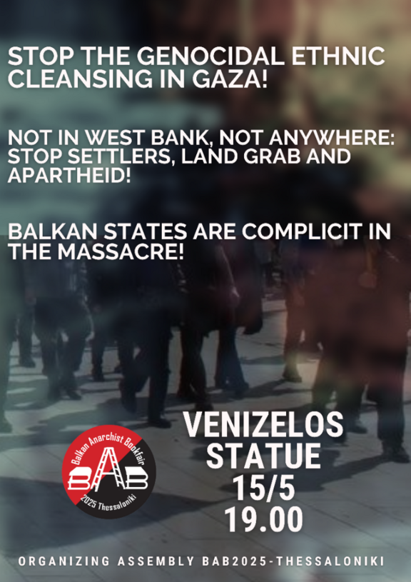 Η περίοδος που διανύουμε είναι ιδιαίτερα κρίσιμη σε παγκόσμιο επίπεδο. Οι πολεμικές συρράξεις που τώρα επικεντρώνονται γύρω από το Ισραήλ και την Παλαιστίνη μπορούν να εξελιχθούν πολύ εύκολα σε παγκόσμιες. Πρέπει να σταματήσουμε με κάθε τρόπο την εμπλοκή του ελληνικού κράτους στη γενοκτονία που συντελείται εδώ και δύο χρόνια, να επιτεθούμε στην πολεμική μηχανή που κάθε μέρα μας προετοιμάζει να γίνουμε κρέας για οβίδες ενώ παράλληλα έχει ήδη εδώ και χρόνια εξαπολύσει πόλεμο στις μετανάστριες/ες θέλοντας να τονώσει την εθνική ενότητα και ομοιογένεια. Από συγκεντρώσεις και παρεμβάσεις που δεν θα σταματούν να μιλάνε για την γενοκτονία των Παλαιστινίων μέχρι και τις πιο επιθετικές ενέργειες σε δομές και επιχειρήσεις ισραηλινού ενδιαφέροντος είναι αναγκαίο να χτίζουμε καθημερινά ένα πολύμορφο κίνημα αλληλεγγύης στους λαούς που αντιστέκονται ενάντια στο τέρας.