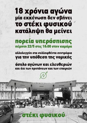 Όλοι και όλες στην πορεία υπεράσπισης του Στεκιού Φυσικού και του ασύλου, Πέμπτη 22/5 18:00 Καμάρα
