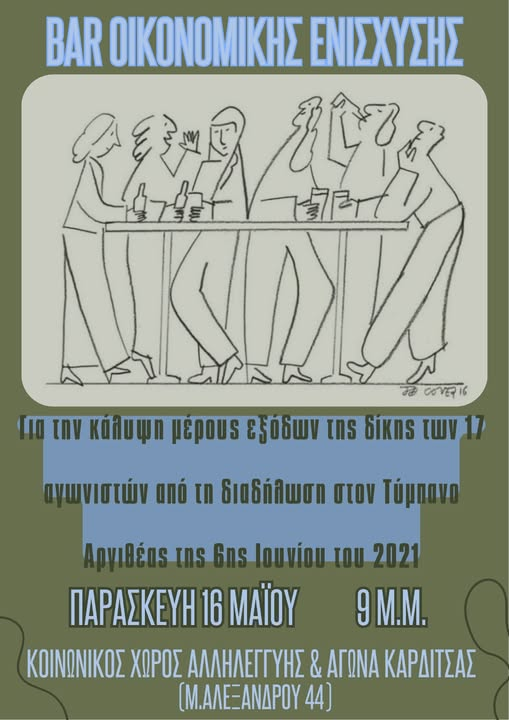 για την κάλυψη μέρους των εξόδων της δίκης των 17 συναγωνιστών από τη διαδήλωση στον Τύμπανο Αργιθέας της 6ης Ιουνίου του 2021