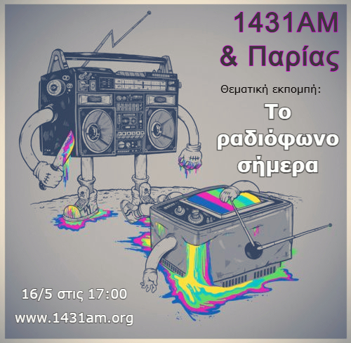 Την Παρασκευή 16 Μάη στις 17:00, θα γίνει συμπραξη του ελευθερου κοινωνικου ραδιοφωνου 1431am με την εκπομπή Παρίας και μαζί θα πραγματοποιήσουν εκπομπή με τίτλο ''Το ραδιόφωνο σήμερα''.
