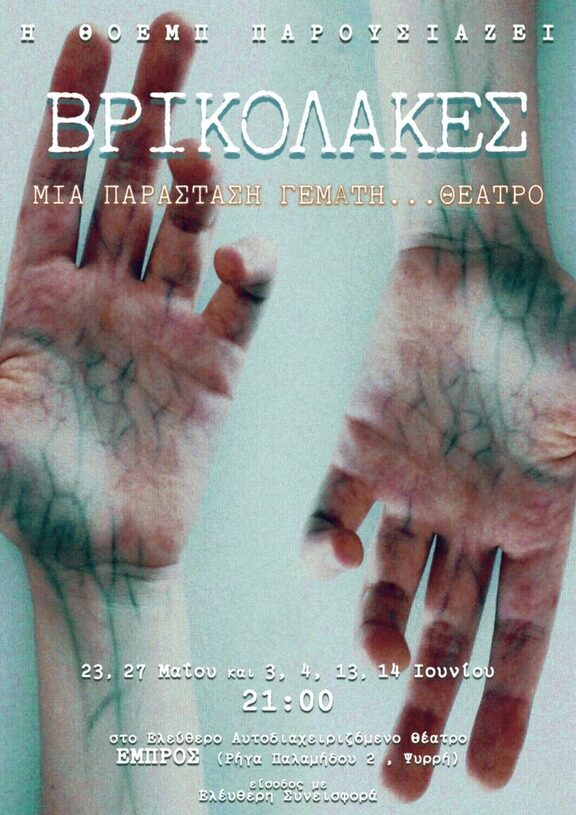 23, 27 Μαΐου και 3, 4, 13 και 14 Ιουνίου στις 21:00 στο ελεύθερο αυτοδιαχειριζόμενο θέατρο ΕΜΠΡΟΣ, Ρήγα Παλαδήμου 2, Ψυρρή (ΣΤ. Μετρό Μοναστηράκι, Έξοδος από Αθηνάς)
