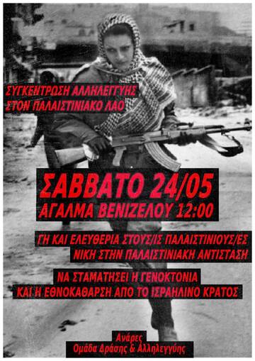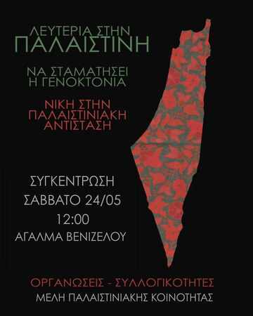 ΣΥΓΚΕΝΤΡΩΣΗ ΑΛΛΗΛΕΓΓΥΗΣ ΣΤΟΝ ΠΑΛΑΙΣΤΙΝΙΑΚΟ ΛΑΟ, ΣΑΒΒΑΤΟ 24/05, 12:00, ΑΓΑΛΜΑ ΒΕΝΙΖΈΛΟΥ