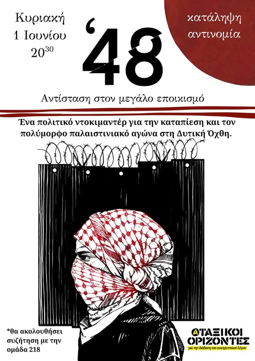 "Το ντοκιμαντέρ με τίτλο «48 | Αντίσταση στον μεγάλο εποικισμό» γυρίστηκε το καλοκαίρι του 2022 στην κατεχόμενη Δυτική Όχθη από την ομάδα 218.
