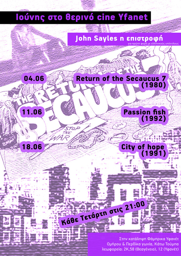 Το cine yfanet παρουσιάζει το δεύτερο αφιέρωμα στις ταινίες του John Sayles, αυτή τη φορά με φρέσκους ελληνικούς υπότιτλους, που επιμελήθηκε η συντρόφισσα Κ. ειδικά για την περίσταση.