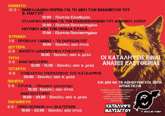 Εβδομαδιαίο πρόγραμμα κατάληψης Ματσάγγου