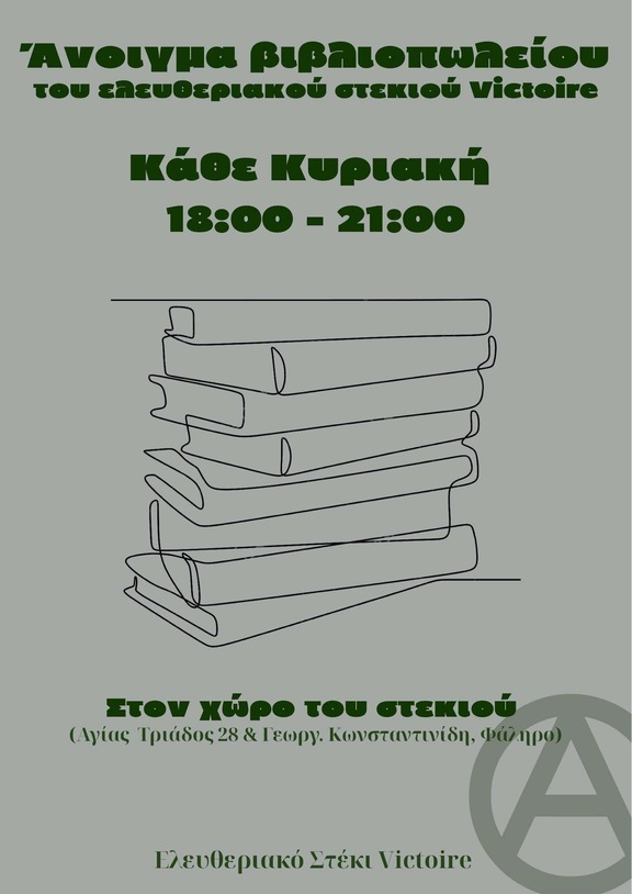 Άνοιγμα βιβλιοπωλείου του Ελευθεριακού Στεκιού Victoire, από τις 18:00 έως τις 21:00