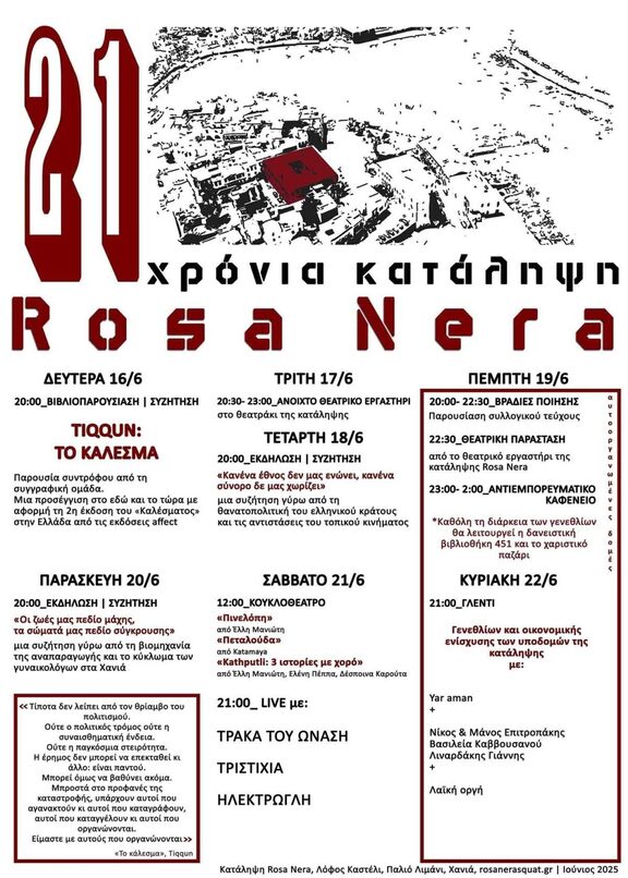 21 χρόνια κατάληψη Rosa Nera_πρόγραμμα γενεθλίων (16-22 Ιουνίου)
