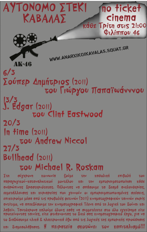 Κύκλος Προβολών Μαρτίου στο NoTicketCinema στο Αυτόνομο Στέκι