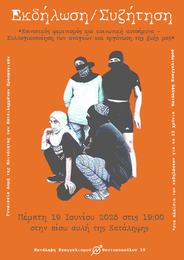 - Εκδήλωση - Συζήτηση: «Κοινοτικός φεμινισμός και κοινωνική αυτοάμυνα - Συλλογικοποίηση των αναγκών και οργάνωση της ζωής μας». (Γυναικεία Δομή της Κοινότητας των Κατειλημμένων Προσφυγικών)