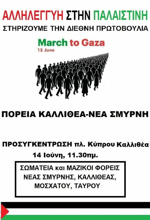 Σάββατο 14 Ιούνη ώρα 11.30 πμ συγκέντρωση στην Πλατεία Κύπρου στην Καλλιθέα και πορεία προς την Πλατεία Ν. Σμύρνης.