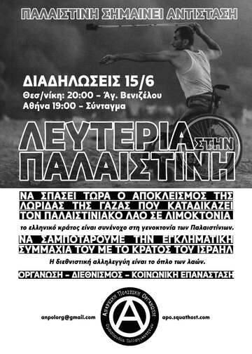 Κυριακή 15 Ιουνίου | Παγκόσμια ημέρα δράσης ενάντια στην γενοκτονία - λευτεριά στην Παλαιστίνη