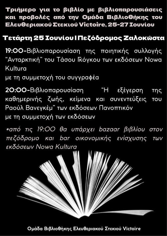 Τρεις ημέρες για το βιβλίο με βιβλιοπαρουσιάσεις και προβολές από την Ομάδα Βιβλιοθήκης του στεκιού