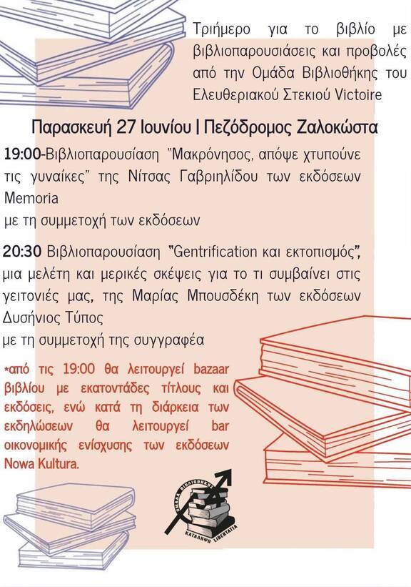 Τρεις ημέρες για το βιβλίο με βιβλιοπαρουσιάσεις και προβολές από την Ομάδα Βιβλιοθήκης του στεκιού