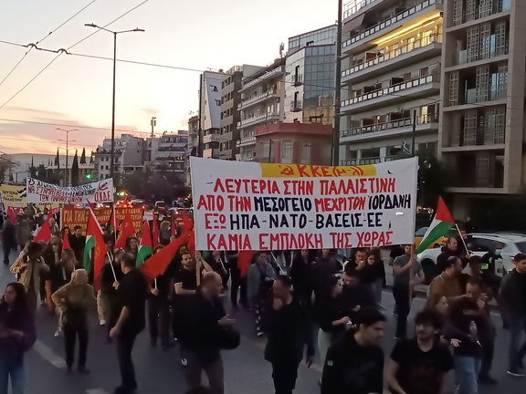 Οι λαοί δεν έχουν ανάγκη από προστάτες. Ο μόνος δρόμος για την εργατική τάξη και τους λαούς όλου του κόσμου, για να αποτρέψουμε ένα γενικό πολεμικό ολοκαύτωμα, είναι ένα μαζικό αντιπολεμικό κίνημα, οι ταξικοί αγώνες. Η καλύτερη υποστήριξή μας στον μαρτυρικό, ηρωικό Παλαιστινιακό λαό είναι να κόψουμε το χέρι της συνεργασίας των ελληνικών κυβερνήσεων προς το Ισραήλ. Η μεγαλειώδης απεργία στις 28/2, όπου σύσσωμη η ελληνική κοινωνία δήλωσε πως δεν αντέχει άλλο το σημερινό καθεστώς, μάς δείχνει τον δρόμο. Πάλη ενάντια στον πόλεμο, σε κάθε συμμετοχή της χώρας στα αιματοβαμμένα σχέδια και τις γενοκτονίες των Δυτικών ιμπεριαλιστών και των Σιωνιστών, σημαίνει πολιτική δράση των εργαζομένων και της νεολαίας: Αναπτύσσοντας όλους τους αγώνες και κινητοποιήσεις σε σχολεία, σχολές, χώρους δουλειάς. Οικοδομώντας ενωτικές, μαχητικές επιτροπές αγώνα. Προτάσσοντας την προοπτική της Πολιτικής Απεργίας ενάντια στη γενοκτονία και κάθε βρώμικη συμμετοχή του ελληνικού καπιταλισμού, για την ανατροπή της κυβέρνησης Μητσοτάκη.