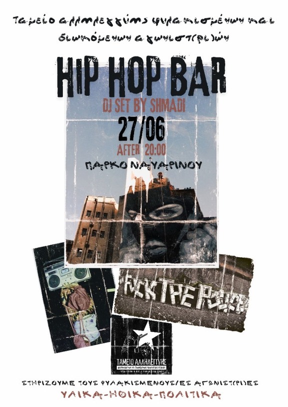 Bar Οικονομικής ενίσχυσης την Παρασκεύη 27/6 απο τις 20:00 στο Πάρκο Ναυαρίνου του Ταμείου Αλληλεγγύης Φυλακισμένων και Διωκόμενων Αγωνιστών/στρίων.