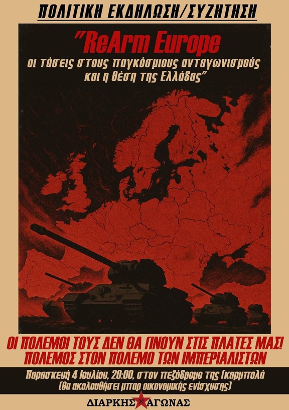 [Θεσσαλονίκη] 🔴 Παρασκευή 4/7 στις 20:00 παρουσίαση της μπροσούρας του Διαρκής Αγώνας για την ταξική απελευθέρωση "ReArm Europe - οι τάσεις στους παγκόσμιους ανταγωνισμούς και η θέση της Ελλάδας" στον πεζόδρομο της Γκαρμπολά.