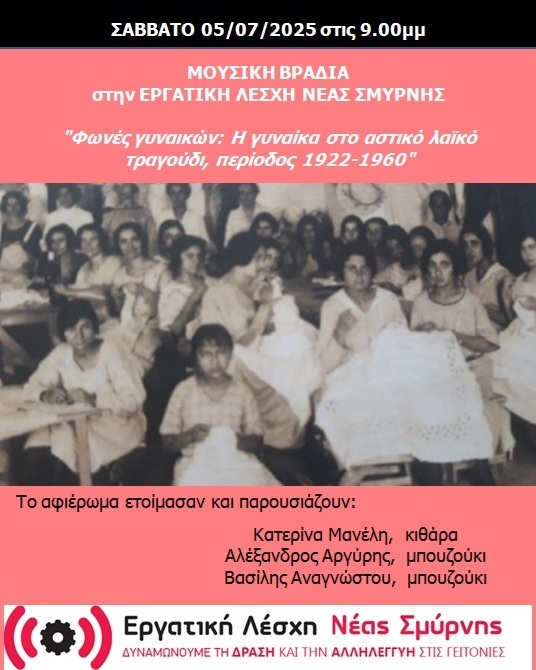 ΜΟΥΣΙΚΗ ΒΡΑΔΙΑ στην ΕΡΓΑΤΙΚΗ ΛΕΣΧΗ ΝΕΑΣ ΣΜΥΡΝΗΣ