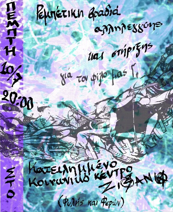 On Thursday 10/07 solidarity night with rebetika in support of our friend G. Against the system-protector that will abandon us once it has the chance, we organize our own communities of mutual support.