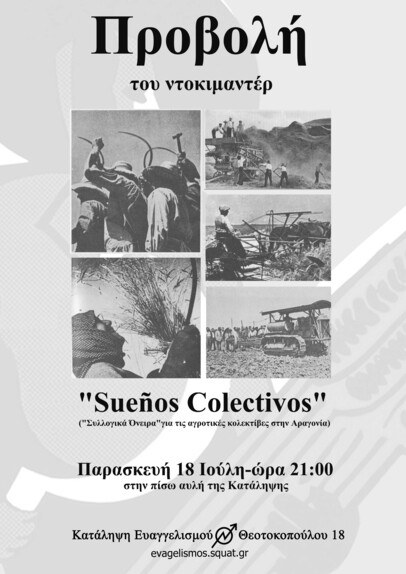Προβολή του ντοκιμαντέρ "Sueños Colectivos"("Συλλογικά Όνειρα") για την κολεκτιβιστική εμπειρία στην Άνω Αραγονία. Παρασκευή 18 Ιουλίου 2025, ώρα 21:00 στην Κατάληψη Ευαγγελισμού (Θεοτοκοπούλου 18,Ηράκλειο).