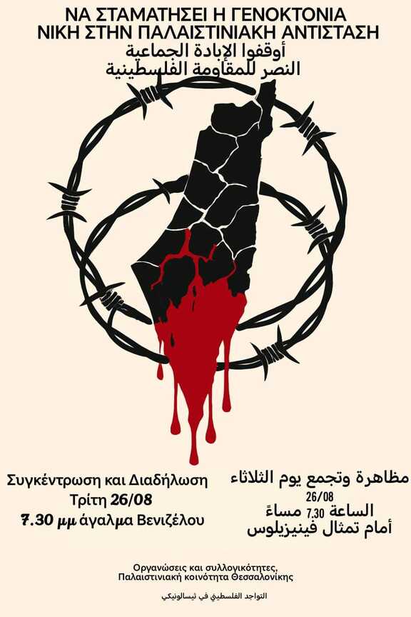 Πορεία αλληλεγγύης στον παλαιστινιακό λαό: Τρίτη 26/08 - 19:30 Αγ. Βενιζέλου