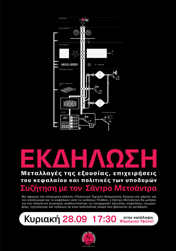 Με αφορμή την έκδοση του συλλογικού τόμου "Πλανητική τεχνητή νοημοσύνη", ο Σάντρο Μετσάντρα θα (επαν)επισκεφτεί την έννοια των επιχειρήσεων του κεφαλαίου για να επιχειρήσει μια ανάλυση της πλανητικής συγκυρίας. Τι μπορούν να μας διδάξουν οι παγκόσμιοι χώροι -στους οποίους κρατικές και άλλες εξουσίες συναντιούνται με τα πεδία της εφοδιαστικής, του χρηματοπιστωτικού συστήματος, της ψηφιοποίησης, των ενεργειακών ροών και υποδομών και της τεχνητής νοημοσύνης- για τις πολλαπλές μεταβάσεις του πολυπολικού κόσμου μας; Σε αντίθεση με πατροπαράδοτες γεωπολιτικές προσεγγίσεις και ιμπεριαλιστικές θεωρίες, η εστίαση στις ετερογενείς και αντιφατικές δυνάμεις που αναδιαμορφώνουν τη σχέση καπιταλισμού και εδαφικής κυριαρχίας δεν υπόσχεται απλώς μια πιο επίκαιρη ή κριτική κατανόηση της συγκυρίας. Ανοίγει επίσης χώρο για τη δυναμική μιας διευρυμένης ταξικής πάλης, κρατώντας ανοιχτό τον ορίζοντα για κάτι που θα έμοιαζε, against all odds, με χειραφέτηση.