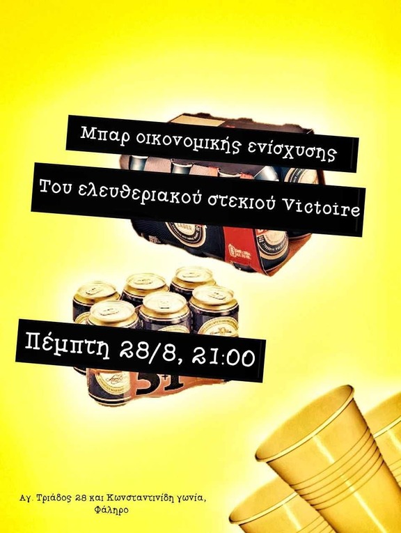 Μπαρ οικονομικής ενίσχυσης του στεκιού, Πέμπτη 28/8 στις 21:00, στο Ελευθεριακό Στέκι Victoire