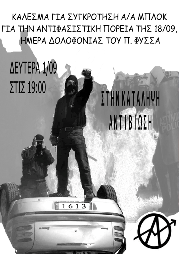 Καλούμε σε ανοιχτή συνέλευση για συγκρότηση α/α μπλοκ στην αντιφασιστική πορεία στις 18/9, ημέρα δολοφονίας του Παύλου Φύσσα.