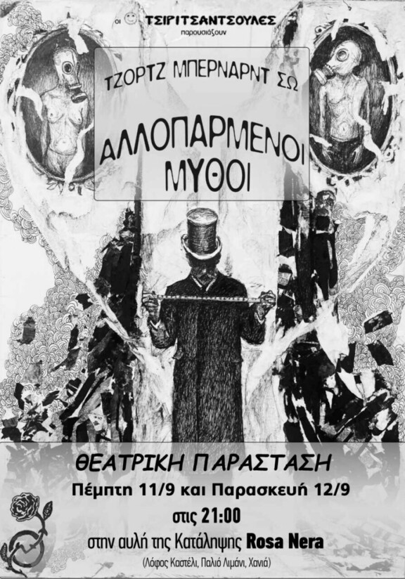 Οι Τσιριτσάντσουλες παρουσιάζουν τη θεατρική παράσταση Αλλοπαρμένοι Μύθοι του Τζορτζ Μπέρναρντ Σω