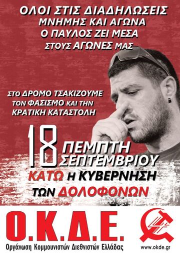 - Ο Παύλος ζει στους αγώνες - Ο φασισμός τσακίζεται στον δρόμο - Μόνιμη καταδίκη της ηγεσίας της ΧΑ