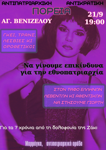 Στηρίζουμε την πορεία για τα 7 χρόνια απο τη δολοφονία της Ζάκι στη Θεσσαλονίκη, την Κυριακή 21/09, στις 19:00 στο Άγαλμα Βενιζέλου.