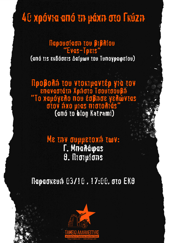 Εκδήλωση-Προβολή ντοκιμαντέρ για τα 40 χρόνια από την μάχη του Γκύζη