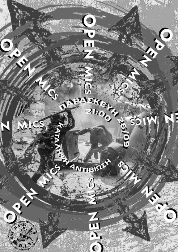 Open Mics από την Gas Mask την Παρασκευή 26 Σεπτεμβρίου στις 21:00 στην κατάληψη Αντιβίωση για την οικονομική ενίσχυση της ομάδας.