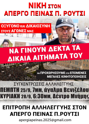 Π. ΡΟΥΤΣΙ: Η ΑΠΕΡΓΙΑ ΠΕΙΝΑΣ ΕΙΝΑΙ ΥΠΟΘΕΣΗ ΟΛΩΝ ΜΑΣ
