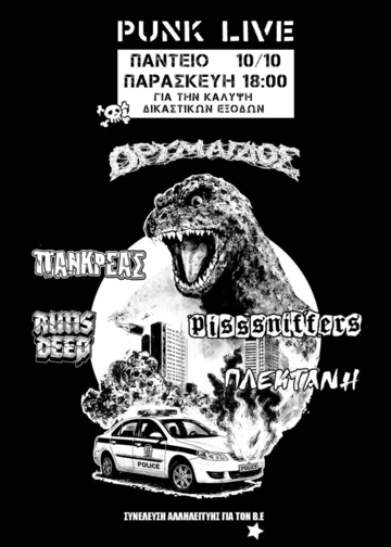 Punk Live Οικονομικής Ενίσχυσης για τα δικαστικά έξοδα του συντρόφου Β.Ε. Στο Παντειο Πανεπιστήμιο την Παρασκευή 10/10, 20:00 Το line up είναι το ακόλουθο :