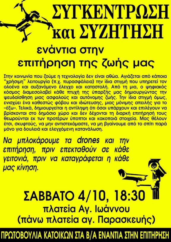 ΣΥΓΚΕΝΤΡΩΣΗ και ΣΥΖΗΤΗΣΗ ενάντια στην επιτήρηση της ζωής μας