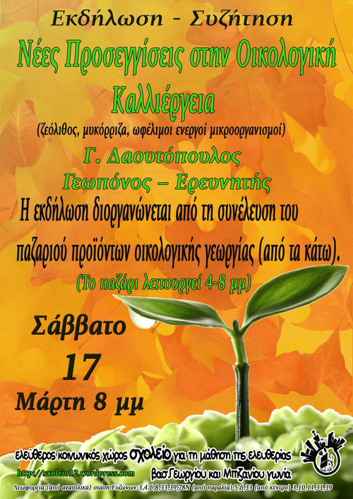 Εκδήλωση-συζήτηση: Νέες προσεγγίσεις στην Οικολογική Καλλιέργεια